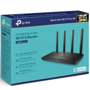 ارتقِ بتجربة الإنترنت في منزلك مع راوتر TP-Link AX12 المدعوم بأحدث تقنيات Wi-Fi 6. يتميز هذا الجهاز بسرعات تصل إلى 1500 ميجابت/ثانية (1201Mbps على تردد 5GHz و300Mbps على 2.4GHz)، مما يجعله مثاليًا للبث بدقة 4K، الألعاب عبر الإنترنت، والعمل عن بُعد.