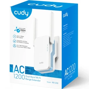 يعد CUDY RE1200 حل ذكي لتوسيع شبكة Wi‑Fi في منزلك أو مكتبك. يدعم تقنية AC1200 اللاسلكية بسرعة تصل إلى 1200 Mbps (867 Mbps على تردد 5 GHz و300 Mbps على 2.4 GHz)ـ، ويعمل بأوضاع متعدّدة مثل Range Extender، نقطة وصول (AP)، أو حل Mesh بتكامل مع روترات Cudy.